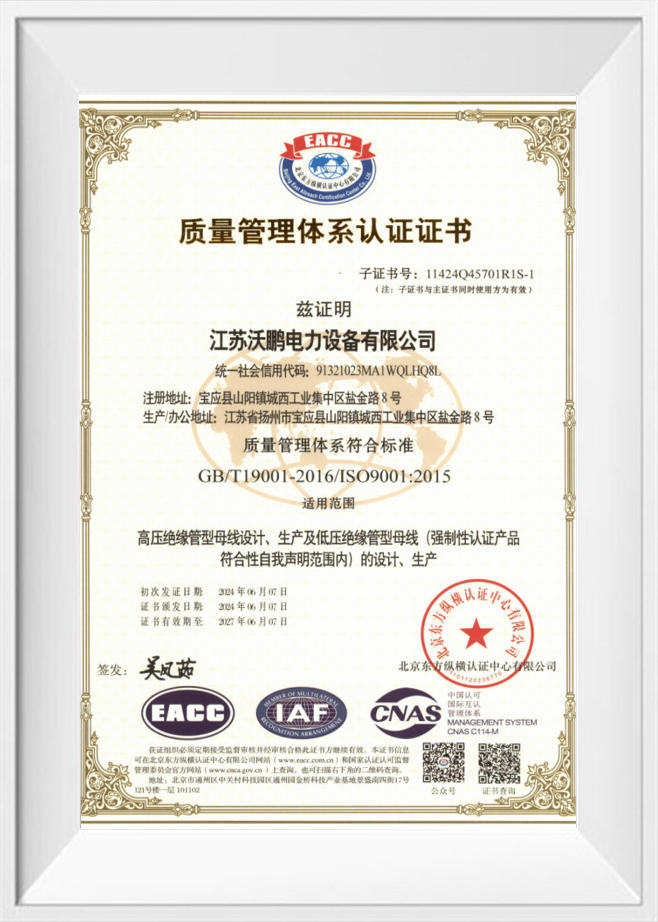 Equipo de energía eléctrica Jiangsu Wopeng Co., Ltd. Empresa de crédito con calificación AAA