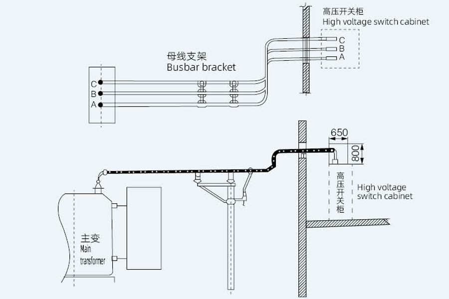 Método 3: Las barras colectoras tubulares se enrutan a través de zanjas o entrepisos de cables Este método es el método de conexión del cable superior del gabinete del interruptor. También se puede conectar a través del entrepiso de cables y la conexión de cables inferior método. Los usuarios pueden elegir según la situación real. El tipo de barra colectora está completamente aislado. |