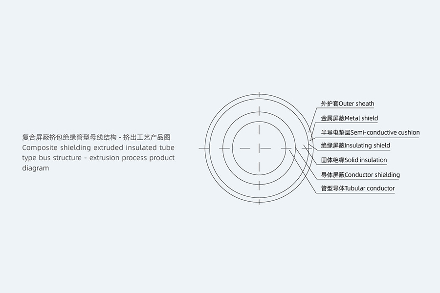 | La barra colectora tubular aislada blindada compuesta es una combinación de un conductor de barra colectora tubular (cobre o aluminio) y un blindaje conductor, aislamiento, protección aislante, etc., extruido por polímero para realizar la corriente de conducción y el aislamiento de protección de la barra colectora. Selección principal de materia prima: tubo duro de cobre conductor (especialmente personalizado), pantalla interior, pantalla exterior, caucho EPDM, capa protectora metálica, lámina de cobre, funda exterior y aislamiento de polímero de poliolefina. Tecnología central: tecnología de coextrusión de tres capas: garantía de calidad de la extrusión, la interfaz entre el blindaje interno y externo y el aislamiento es estrecha sin espacios, lo que mejora enormemente el rendimiento del bus de tubos aislados; La tecnología de unión de barras colectoras de tubos aislados adopta una unión de tubos blindados para completar el producto. |